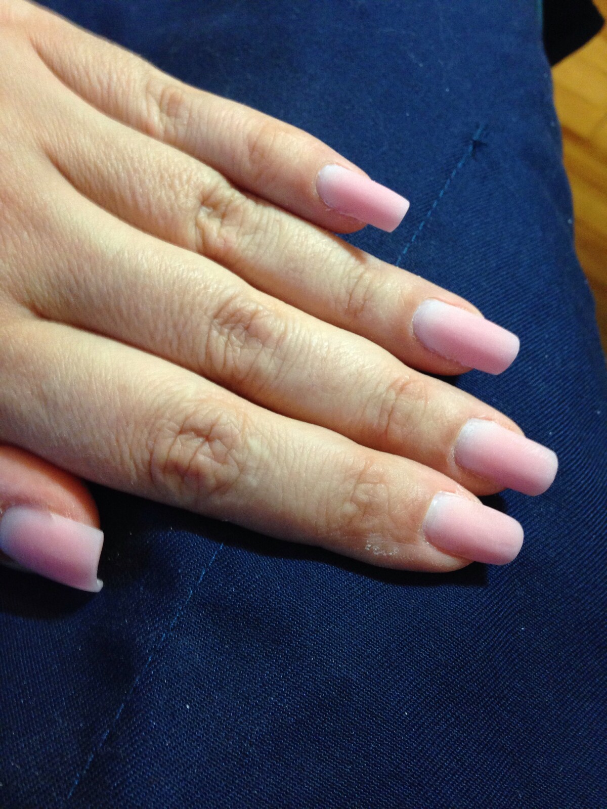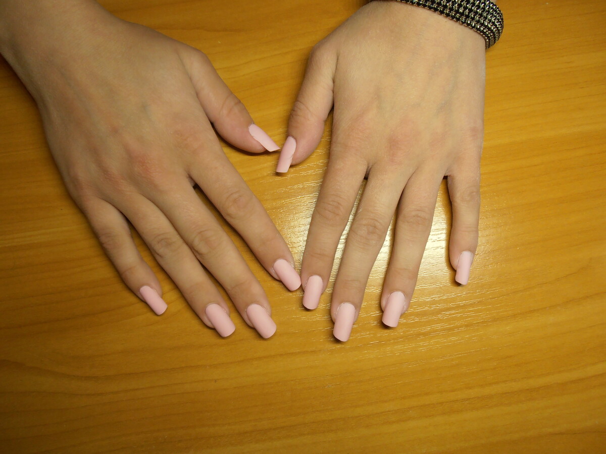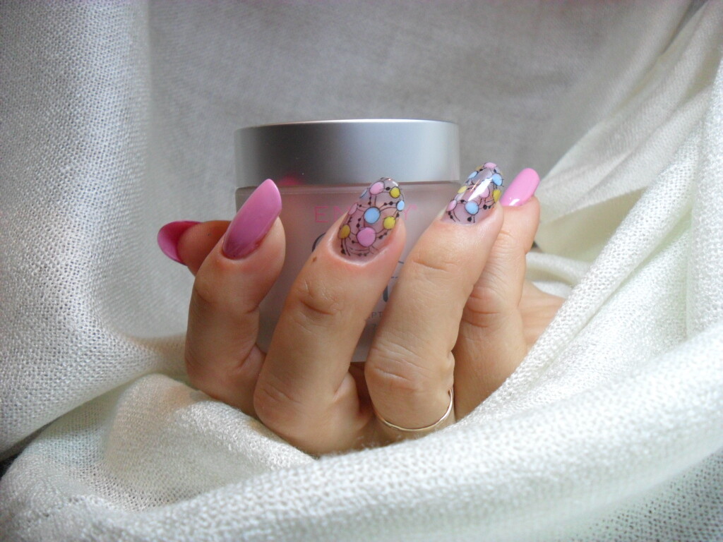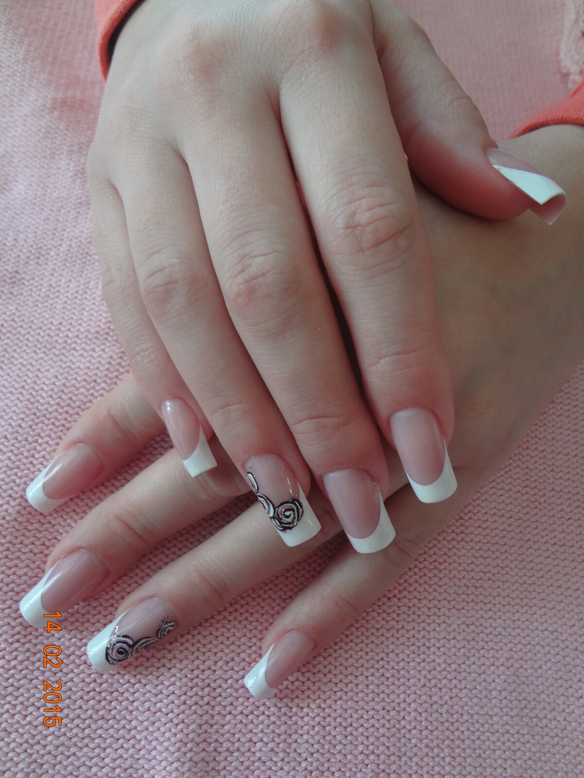 - Pink & white acrylic application;