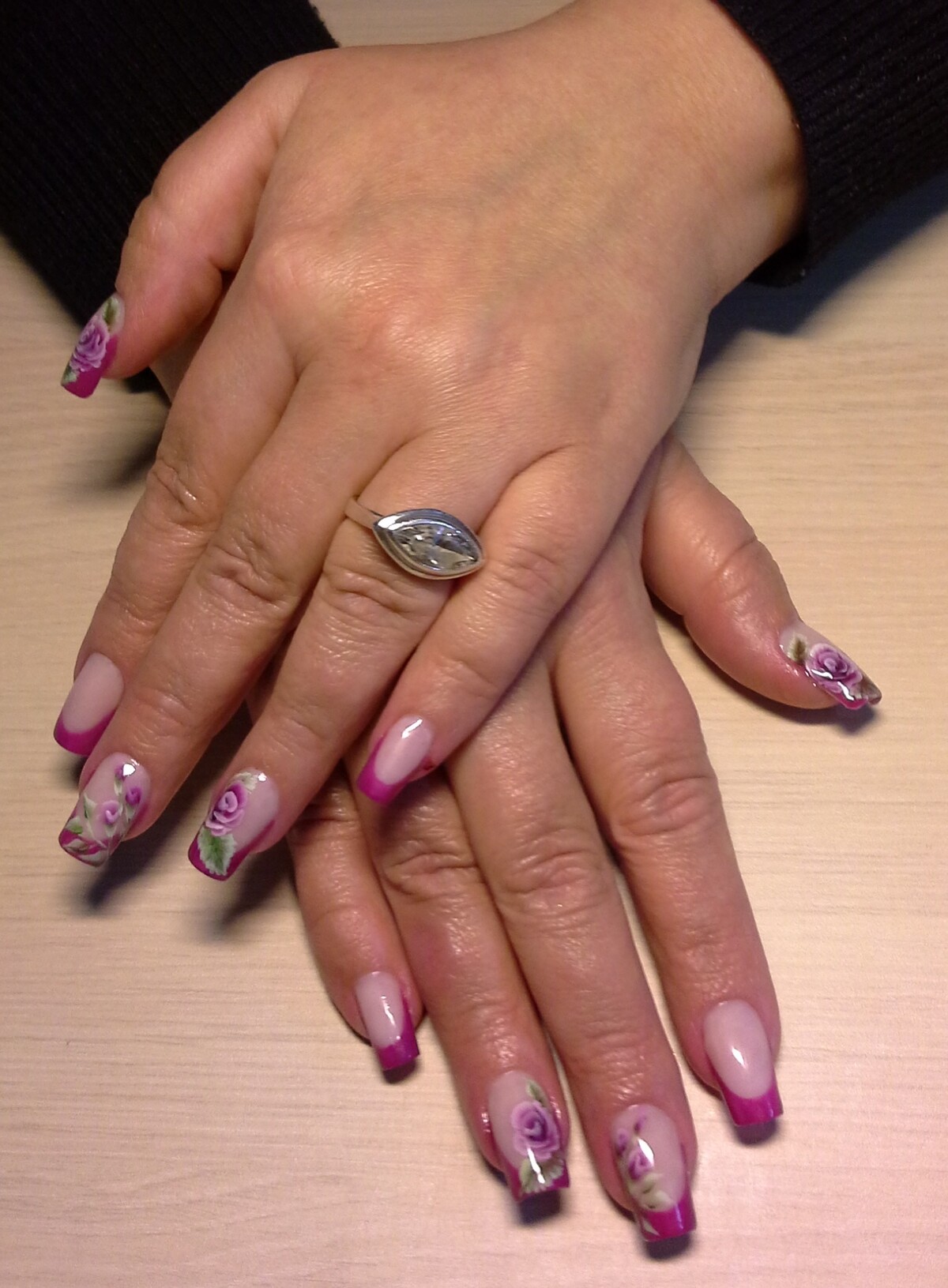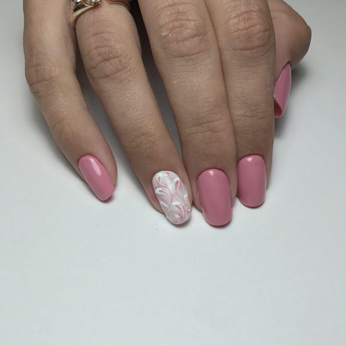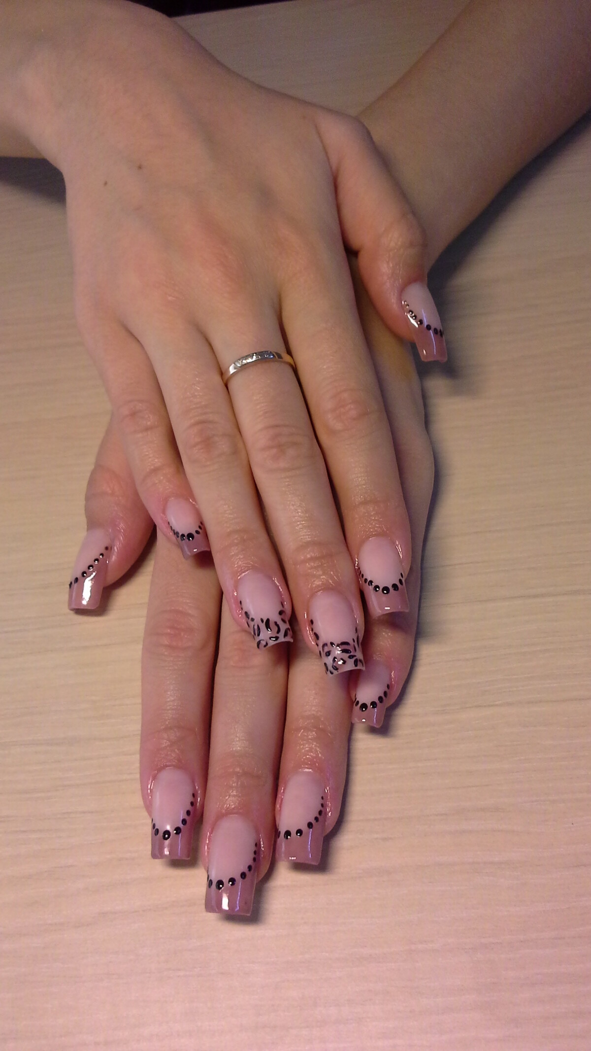 - Pink & white acrylic application;