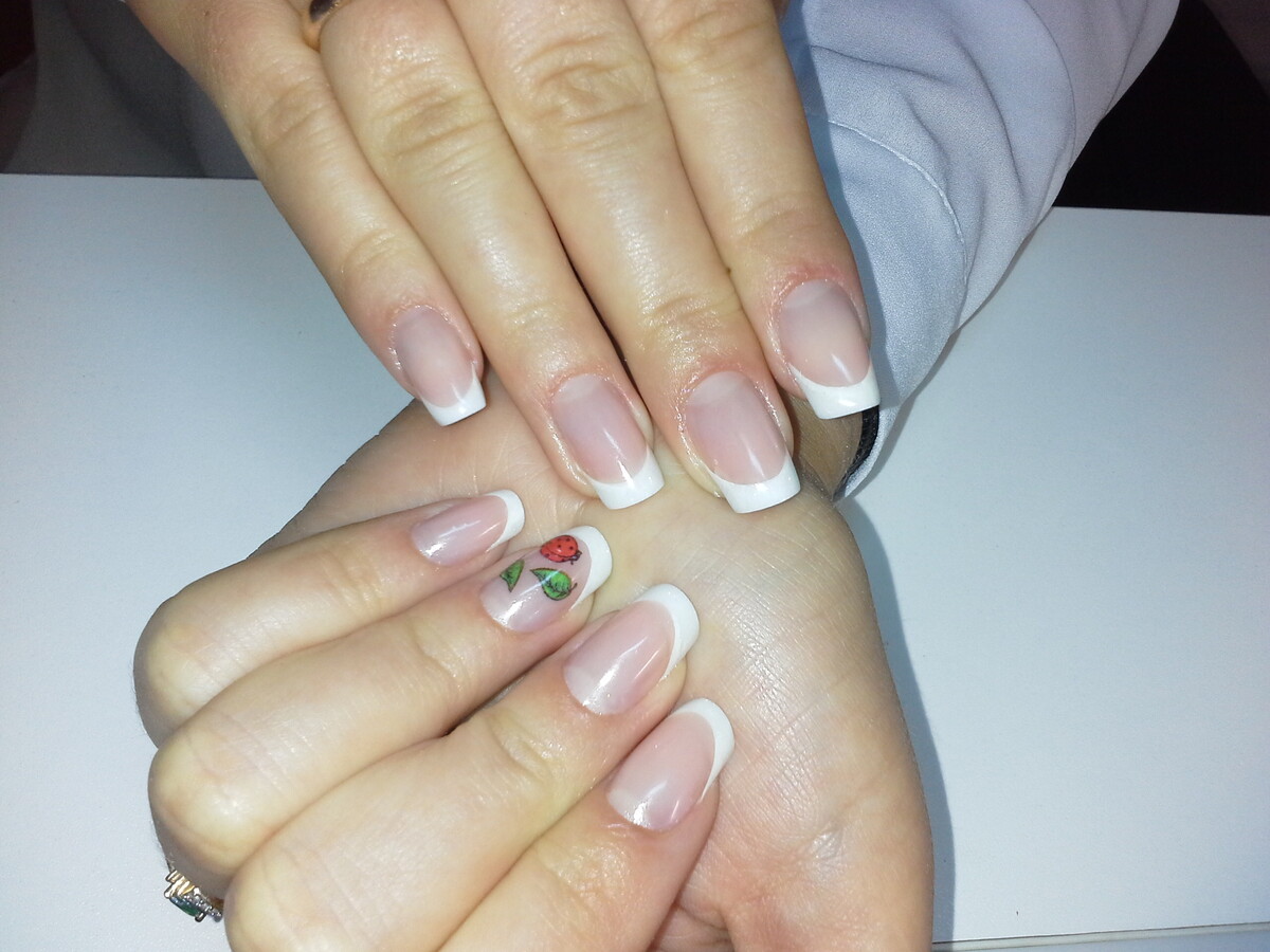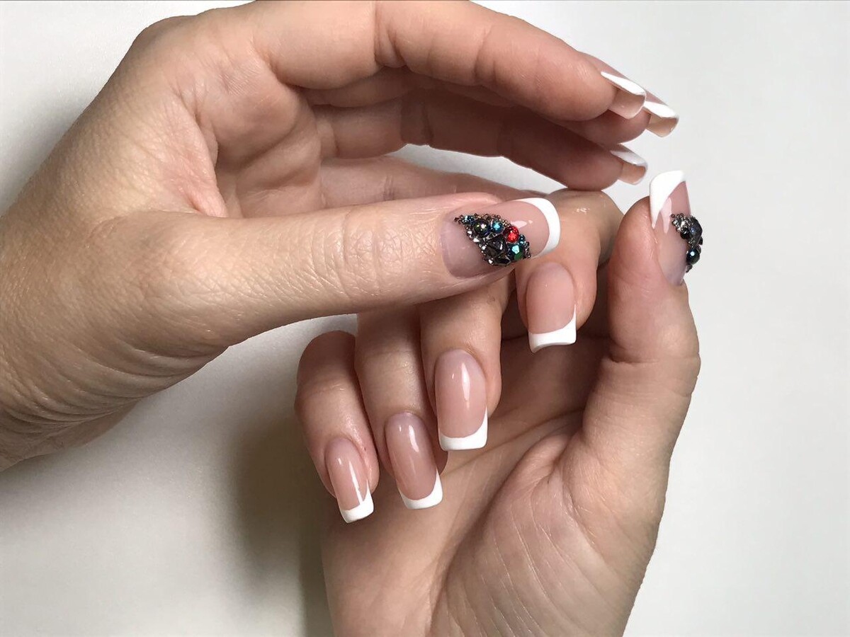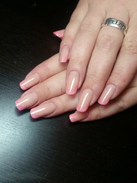 - Pink & white application on a tip;