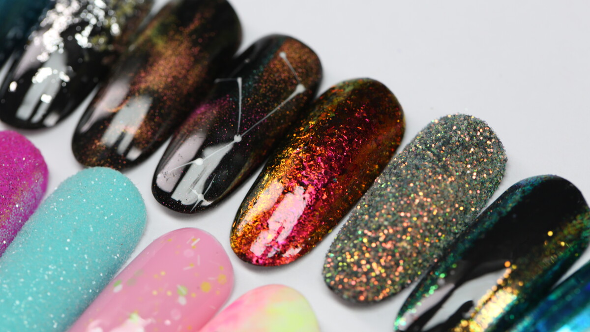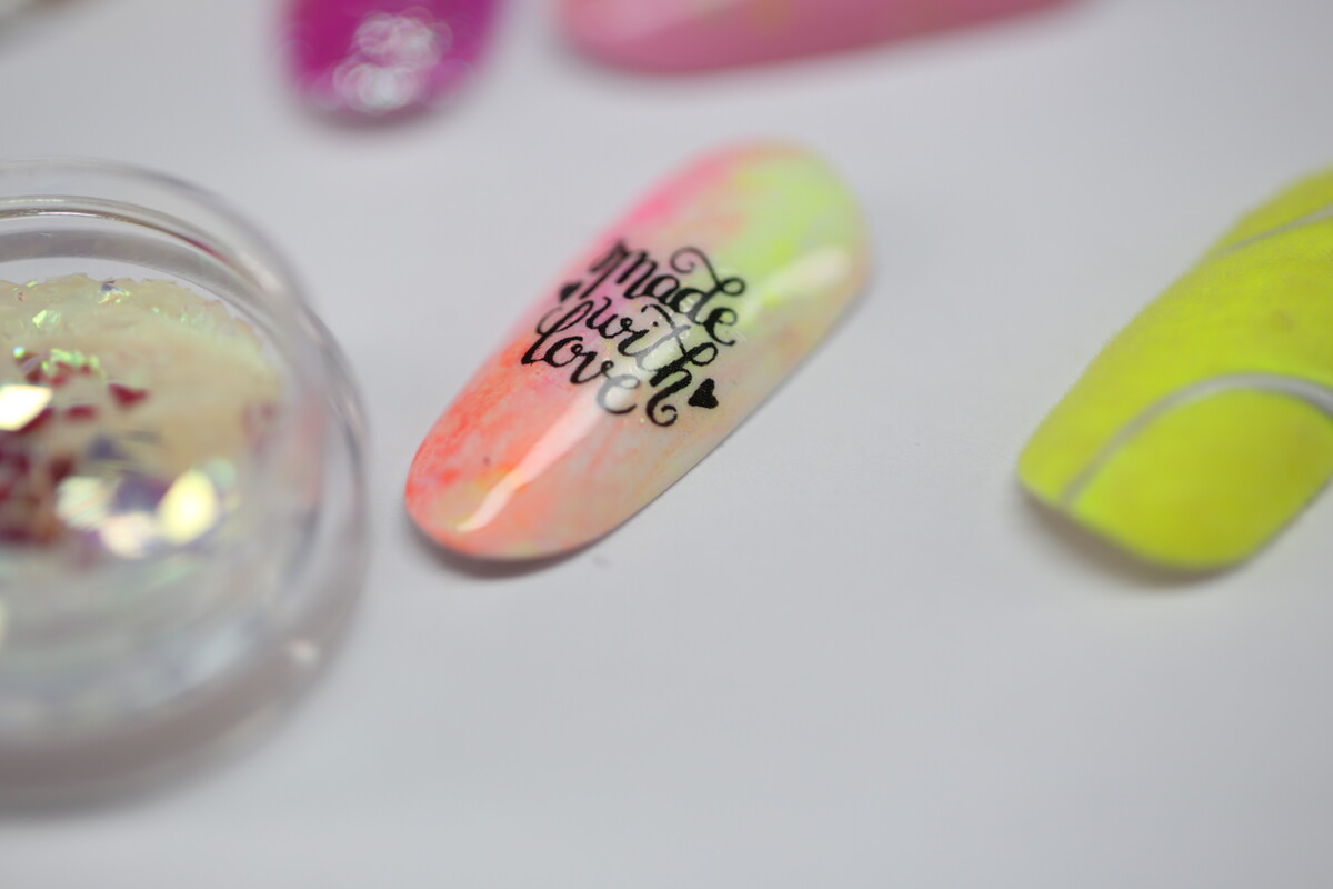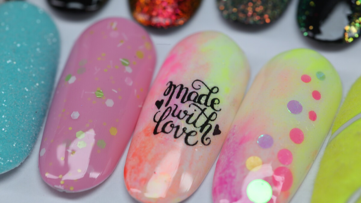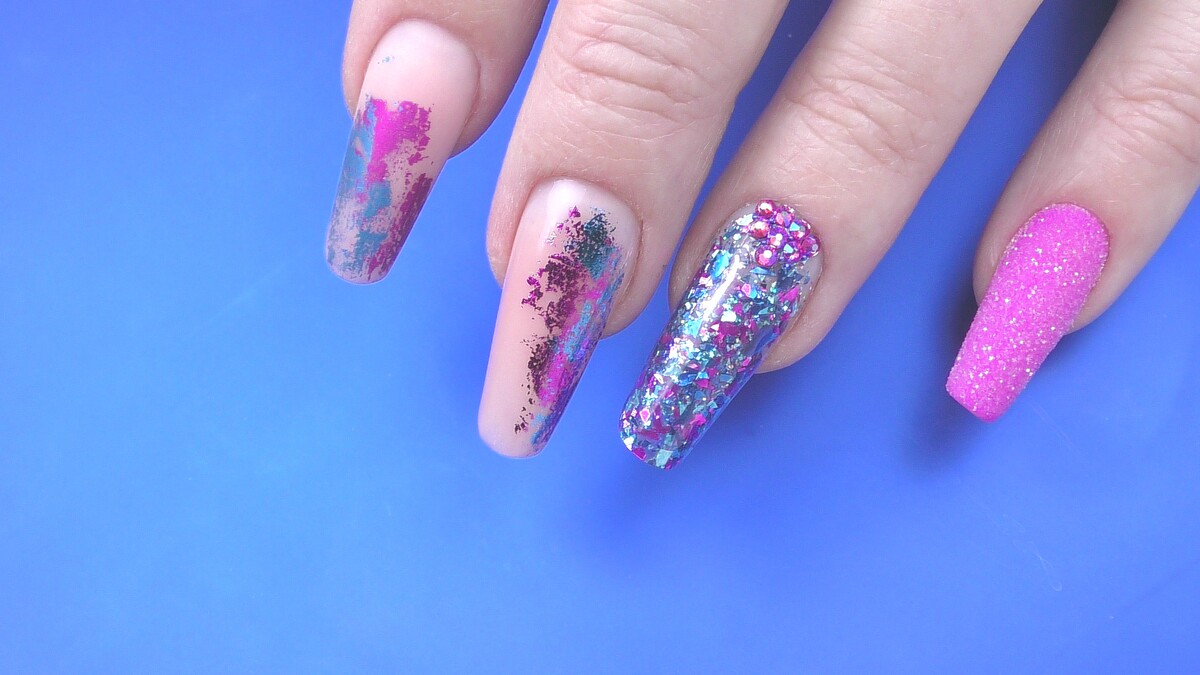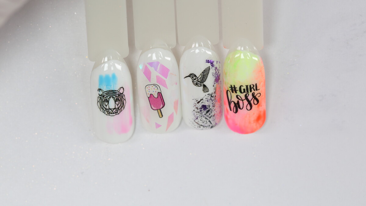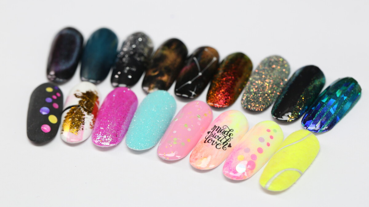 On this course we are going to learn simple design using different accessories - transfer foil, glitter, chrome powders, stencils, striping tape, magnet, sponge, flakes and more